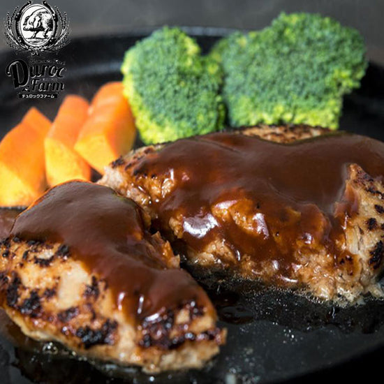 自社が開発したオリジナルの材料の比率と味付けのデュロックファームのブランド豚・四万十ポーク100%でジューシーなハンバーグが登場しました